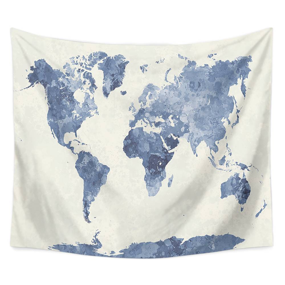 Watercolor Blue World Map Tapestry, World Map Tapestry Wall